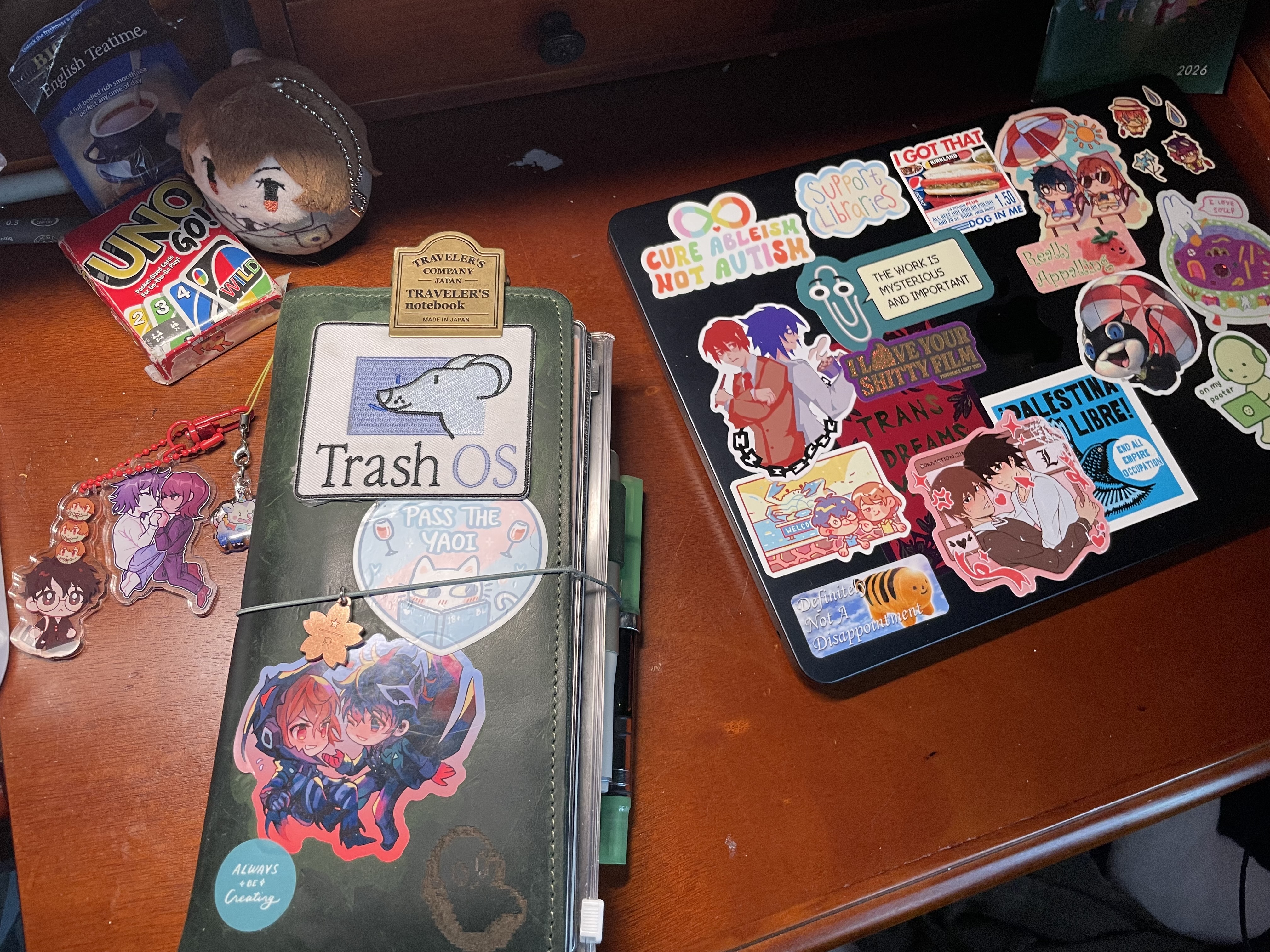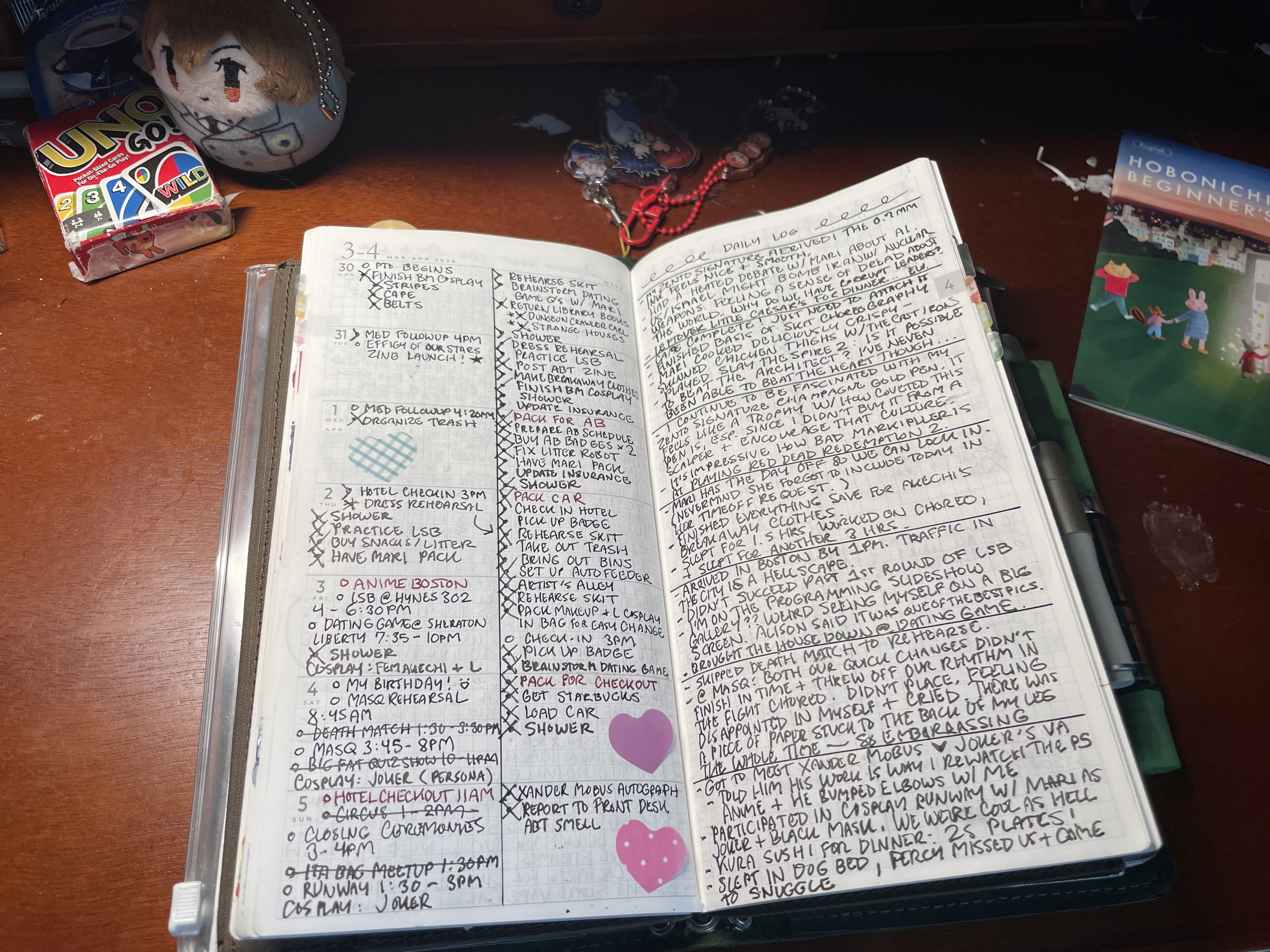 as a result, my notebook has become a space i cultivated into my own, covered in patches and stickers while carrying various self-indulgent ephemera in its pockets. it’s become a sensory haven for me. the traveler’s notebook system has been my favorite to use, and it continues to be my daily driver. it’s been so easy for me to use everyday thanks to the time and effort i spent developing a system that would work best for me.